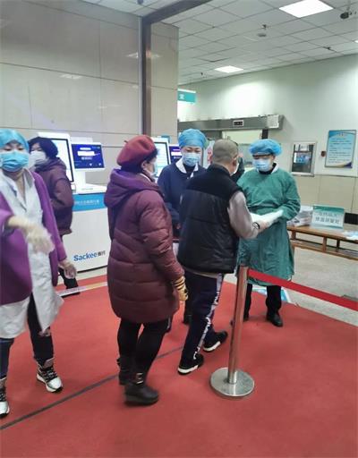 院机关、工勤志愿者严把医院入口安检关