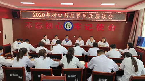 近日,由达日县人民医院吴敏院长牵头,辽阳市中心医院医疗支援队、青海省心脑血管专科医院医疗支援队、达日县人民医院全体科室主任参加,就对口帮扶工作进行了深入交流与探讨。